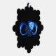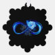 Luminous infinity symbol with glowing, beautiful, lushly blooming rose made of blue flames on black background.