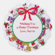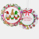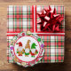Un adorable ornamento navideño y etiqueta de regalo que se puede personalizar. Gnomes dibujados a mano y Navidades dulces, hombres de nieve y pingüinos. Colorido con rojo, verde y morado.