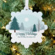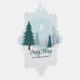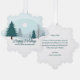 Un hermoso paisaje invernal con pinos verdes verde azulados y terreno cubierto de nieve sobre tarjetas de adorno de vacaciones de negocios personalizadas. Personalizar esta empresa Happy Holidays tarjeta en forma de copo de nieve con tu propio mensaje corporativo en la parte posterior en un guión cursivo elegante.