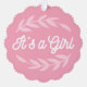 Hojas rosadas Pastel - Tipografía "Es un Chica" con un toque retro. ... Diseño de tarjeta de ornamento de Alma Wad para anunciar la llegada de un chica de recién nacido/duchas para bebés .