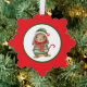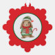A festive ornament featuring a winter bunny in seasonal attire, holding a candy cane. Set within a red scalloped-edge frame with green accents, this charming design adds warmth and whimsy to holiday décor and gift collections.