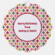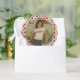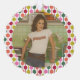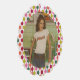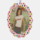 Añade tu propia foto de personalizado al frente de estas tarjetas de adorno y tu mensaje al reverso. Presentan un patrón geométrico de estilo retro en los años 70 Navidades de colores rojo, verde oscuro, verde limón, rosa y naranja. Tu texto está en negrita con letras rojas.