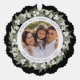 Celebre la temporada con esta elegante tarjeta de adorno botánico de Navidad, que incluye su foto familiar favorita enmarcada por una corona de bayas de nieve, flores de algodón y follaje verde salado sobre un rico fondo negro. Personalice la parte delantera con su saludo de vacaciones personalizado, nombre y año para un toque cálido y personal. La parte posterior de la tarjeta de ornamento incluye espacio para tu mensaje con letras blancas, lo que hace que sea una forma elegante y sentida de compartir tus deseos de vacaciones con tus seres queridos.