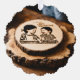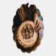 mujer mirando hacia abajo un grabado de sus hijos en una montaña rusa de madera en sus manos