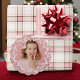Dulce la temporada con este adorno de fotos de caña de caramelo de menta. Diseñado con los clásicos patrones de caramelos rojos y blancos, es el lugar perfecto para capturar recuerdos de vacaciones. Personaliza con nombres, fechas o mensajes especiales para un toque festivo en tu árbol de Navidad o como un regalo mediocre.