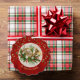 Esta tarjeta de ornamento de papel para Navidades con temática musical cuenta con un cuerno francés en el centro decorado con pinares, hojas huecas, bayas rojas y flores, sobre el fondo de un villancico de Navidades de chapa vintage carol. Alrededor del borde hay un simulado metálico rojo con notas de música dorada, también decorado con vegetación navideña. El texto es un color de oro que coincide con el de un tipo de letra decorativo y elegante. En la parte posterior hay una plantilla de fotos y un mensaje de personalizable.