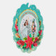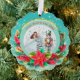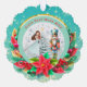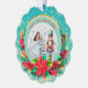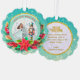 Description: Celebrate the magic of the holidays with this enchanting personalized Christmas ornament! Featuring a beautiful illustration of Clara from The Nutcracker ballet holding her beloved Nutcracker, alongside a festive Christmas tree and vibrant poinsettias, this ornament is a perfect keepsake. The front can be customized with a name (e.g., "Olivia as Clara") and the year, making it a truly unique memento. The reverse side carries a heartfelt "Merry Christmas! Wishing you a Happy and Healthy New Year. Love [Your Family Name]" message, surrounded by sparkling gold accents and a beautiful bokeh background. Crafted from a lovely teal and snowflake border, this ornament adds a touch of classic holiday charm to any tree. It's an ideal gift for ballet lovers, children, or families looking for a special way to commemorate the festive season.