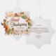 Este magnífico ornamento de periódico de vacaciones del día de Acción de Gracias de negocios cuenta con un precioso borde de hojas de cascada y flores otoñales alrededor de su elegante mensaje cursivo HAPPY THANKSGIVING. Personalizar con el nombre de su empresa en marrón claro entre los tonos tierra naranja y amarillo de estos ornamentos de marketing de vacaciones corporativas que se duplican como etiquetas de regalo.
