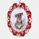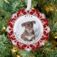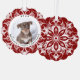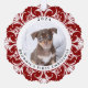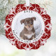 Este adorno navideño personalizado presenta un encantador diseño de personalizable con un rico fondo de copos de nieve rojo. Perfecto para mostrar la foto de un perro favorito, lo que lo hace ideal para conmemorar su primera Navidad. La parte trasera muestra un patrón de copos de nieve que combina un toque festivo con cualquier árbol de Navidad. El adorno es un conservador elegante y un regalo para los amantes del perro. Happy Ann Designs 2024. La foto actual es un marcador de posición - por favor, reemplácelo con su propia foto para hacer este adorno único suyo.