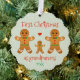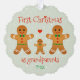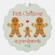 NewParkLane - Cute Tarjeta de Ornamento de Navidad, con la cita de 'Primera Navidad como abuelos', para celebrar la primera Navidad de tus padres como abuelos, con dos lindos hombres de pan de jengibre y un pequeño hombre de pan de jengibre y un corazón entre ellos, en medio de un sage verde y nevado fondo. Los textos están en un divertido tipo de letra escrita a mano en rojo. Todos los estilos, colores y tamaños de texto se pueden modificar para adaptarlos a sus necesidades. ¡Una gran tarjeta de Navidades para los nuevos abuelos! Proteja esta colección para ver los elementos coincidentes. ¿Tienes deseos de diseño personal específicos? Siéntete libre de contactarme.