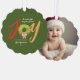 Los abuelos primero adornaron con foto en la parte trasera el papel de keepsake personalizado de Navidad. Creado a partir de una corona de color acuático dibujada a mano y arco con divertidas letras multicolores. Arte original de Leslie Larson.