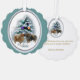 Dos adorables pomeranias posan frente a un árbol forestal decorado. Hermoso arte navideño para amantes de los pom. Grandes regalos de Navidad, tarjetas de Navidad, adornos, sudaderas, más.