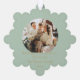 Sage Green Pagoda Merry Christmas Tree 2-Photo Ornament Celebrar la temporada navideña con elegancia usando nuestro Sage Green Pagoda Merry Christmas Tree 2-Photo Ornament. Este ornamento incluye las palabras "Feliz Navidad" en nuestro distintivo patrón de árbol de Navidad verde sabio, con espacio para una foto de personalizable en el frente. La parte de atrás incluye otra foto de personalizable y la frase "Te deseo una feliz Navidad". Personalice ambos lados reemplazando las fotos, el nombre y la fecha para crear un mantenimiento significativo. No olvide explorar nuestros adornos y objetos de la colección de Navidades Chinoiserie Pagoda para una completa estancia festiva.