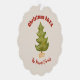 Navidades de keepsake simples y minimalistas, adorno de papel con foto en la parte posterior. Creado a partir de un árbol de Navidad acuarela dibujado a mano en un estilo kitsch. Arte original de Leslie Larson.