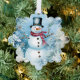 Ornamento/saludo de Navidad azul y dorado con un lindo muñeco de nieve con un sombrero de top negro y bufanda de manta de búfalo. Personalice la parte posterior con su saludo y cualquier otro texto que elija. Comuníquese conmigo para obtener ayuda con sus personalizaciones o para solicitar productos adicionales de correspondencias o coordinación.