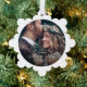 Enviar alegres deseos de vacaciones como nuevo Sr. ¡Y la Sra.! Celebra el matrimonio como recién casados y comparte dos de tus fotos favoritas de bodas con una elegante tarjeta de adorno para festividades personalizados. Todo el texto de esta plantilla es sencillo de personalizar. (IMAGEN PLACEMENT TIP: Una manera fácil de posicionar una imagen exactamente como se desea es recortarla antes de subirla al sitio web de Zazzle.) El moderno diseño minimalista en blanco y negro presenta una elegante superposición de tipografía de guiones y 2 fotos de su elección. A la familia y a los amigos les encantará mostrar esta única tarjeta de adorno para colgar personalizada. ¡Feliz Navidad y vítores de alegría para siempre!