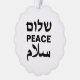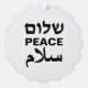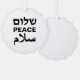 Peace Shalom Salaam tarjeta de adorno de vacaciones de tipografía moderna en blanco y negro. Paz en inglés, hebreo y árabe. Texto negro sobre fondo blanco.
