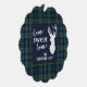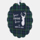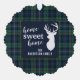 Cute hogar dulce hogar tarjeta de ornamento de Navidad que puedes personalizar fácilmente haciendo clic en el botón "Personalizar", con silueta de ciervo y patrón de tartán de clan Robertson.