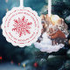 Tarjeta de adorno navideño con un copo de nieve rojo, caprichoso, estilo arte folclórico dentro de un borde de puntos y una foto de tu personalizado. Texto de personalizable "Te deseo una feliz Navidad". Texto blanco sobre fondo rojo.