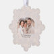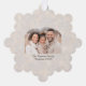 Your family Christmas photo will appear inside a stylish arch shape on this elegant ornament card. The background pattern features silvery holly shapes on a light neutral background. There's a template for your family name and the year in beautiful script typography. On the back, there's a template for your own special holiday message.