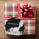 Esta tarjeta de ornamento colgante tiene un gato blanco guiñado por una cola esponjosa que cruza las teclas del piano sobre un fondo negro cubierto de varias notas de música blanca. Personalizar el texto con las plantillas en la parte delantera y posterior.