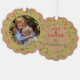 Navidades clásicos de la época de vacaciones tarjeta de adorno con bayas rojas naranja y rosa, hojas de guirnalda de color verde claro y oscuro sobre una textura rústica de papel de imitación marrón. Con opción y espacio para el personalizar del texto, el nombre de la familia y la fecha del año, y añadir una foto personal de su elección en la parte delantera, y un mensaje de bienvenida de la temporada de personalizable en el reverso de la tarjeta.