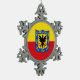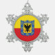 Ornamento de copo de nieve con diseño con bandera de Bogotá, capital de Colombia, bandera roja y amarilla con escudo de armas con águila en el centro