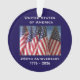 Declaration of Independence on back, 250th Anniversary 1776 to 2026, United States of America, Christmas Tree Ornament. A great milestone for the USA! Photo of American flags waving in the wind, and patriotic text make this a wonderful keepsake - a once in a lifetime event! Great Christmas acrylic ornament. Change to 250th Anniversary or 250th Birthday, your choice. All Rights Reserved © 2025 Alan & Marcia Socolik.