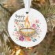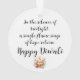 Diya de Devotion Ornament Una diya luminosa resplandece dentro de un portaobjetos dorados ornamentados, su calor sagrado de fundición de llama a través de un tapiz de flores pintadas a mano. Las joyas y los patrones intrincados brillan como bendiciones, mientras que las motas doradas bailan a través del aire como oraciones susurradas. Esta imagen evoca el alma del Diwali, una celebración de la luz triunfando sobre la oscuridad, la belleza, la gratitud y el eterno ritmo del renacimiento. La cita que la acompaña ("En el silencio del crepúsculo, una sola llama canta de esperanza renacida") impresa al revés, profundiza la resonancia emocional, ofreciendo una reflexión poética para llevar adelante el espíritu del festival.