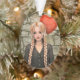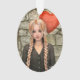 Representación digital en 3D de un bello chica adolescente con un vestido retro sosteniendo un globo en forma de corazón sobre un fondo de pared de piedra. Un regalo perfecto para el El día de San Valentín
