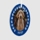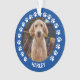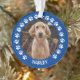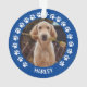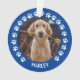 El adorno mascota personalizado para los amantes del perro (o gato) incluye una foto de tu amigo peludo en la parte delantera y trasera con un marco redondo lindo y moderno de huellas de pata.