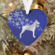 Este adorno navideño de bonito hará un regalo maravilloso para quien ame un Doberman Pinscher! Tiene una silueta de plata doberman frente a un rociador de copos de nieve de plata ornamentados. La imagen se coloca sobre un fondo azul profundo degradado. La parte posterior del ornamento tiene el mismo fondo azul y copos de nieve, y un campo de texto para personalizar.