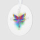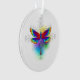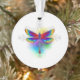 Luminosa, arco iris, libélula poligonal sobre fondo blanco, pintada con acuarela.