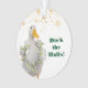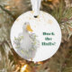 Un lado de este llamativo adorno tiene un pato de piel blanca con una cortina de color agua. El otro lado presenta una cortina de color agua de bonito con el mensaje "Feliz Navidad". Toda la copia puede ser cambiada y personalizada como usted desea usando la herramienta personalizar.
