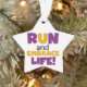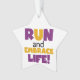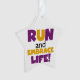 Si te gusta correr, correr 5 Ks, 10 Ks, media maratón, o maratones, te encantará este colorido diseño de texto en morado y amarillo que dice Correr y abrazar la vida! Corre y abraza camisetas de la vida, caramelos, imanes, botones, tarjetas, pegatinas, llaveros y muchos otros artículos para corredores que aman un diseño de ejecución brillante y colorido.