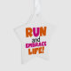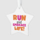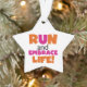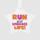 Camisetas de texto Run and Embrace Life, caramelos, imanes, mousepads, tarjetas, pegatinas, llaveros, botones, imanes, placas y servilletas de papel, bolsas de regalo, latas de caramelo, relojes y muchos otros artículos con un diseño rosa y naranja brillante. Estos productos temáticos hacen grandes regalos para cualquiera que corra por diversión, corre por pista, maratones, media maratón, 10Ks o 5Ks!