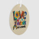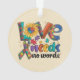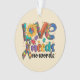 Comparte compasión y apoyo con este adorno de conciencia del autismo "El amor no necesita palabras", que presenta un girasol vibrante, corazón y coloridas piezas de rompecabezas. Perfecto para las madres, profesores, defensores y cualquiera que celebre la aceptación del autismo.