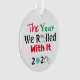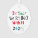 El Año En Que Lo Logramos. En cuarentena y seguro 19. Un memorable adorno navideño de 2020 con los ceros tiene máscaras y un rollo de papel higiénico sobre ellos.