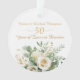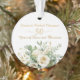 Celebre un hito dorado con este elegante adorno de 50 años, que incluye rosas marfil-blancas y anillos de oro digitalmente renderizados. Un recuerdo atemporal para los cónyuges, padres o una pareja amada que marca los cincuenta años de amor. Personaliza con nombres, fecha de aniversario o un mensaje corto para que sea extra especial. Un bello acento para las vacaciones o para colgar todo el año como símbolo de un amor duradero.
