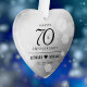 ¡Celebrar el 70 aniversario del boda de platino con este adorno conmemorativo! Elegante serif negro y sans serif grabados con confeti hexagonal en un fondo platino añaden un toque memorable para esta ocasión especial y un hito extraordinario. Personalizar con los nombres de la pareja y años de matrimonio. El reverso muestra un diseño idéntico. Usar tal como está, o reemplazar por una foto. Este diseño está optimizado para las formas de círculo, oval, corazón y camisa. Diseño © W.H. Sim. Ver más en zazzle.com/expressionsoccasions