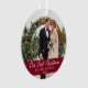 Elegante caligrafía guión Nuestra primera foto de Navidad Ornamento borgoñoso con copos de nieve de vuelta - Perfecto para una foto de un Boda o una pareja de fotos