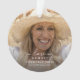 Elegante Ornamento De Fotos De Doble Lado Tributo Por Navidad. El diseño muestra el texto 'En memoria amorosa', una imagen de tu ser querido, su nombre y fechas. El texto en blanco es una combinación de escritura elegante y tipos de letra serif y se sienta en una superposición sobre la fotografía.