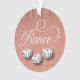 Un elegante diseño de un jugador de dados gordos chispeantes para tu grupo favorito de Bunco. Tipografía de escritura elegante y tres dados afortunados de Bunco.