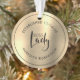 Elegante Jefe Metálico de Oro La Dama Estableció El Ornamento De Cita... Un tesoro obsequio por el mantenimiento de un patrón empresario en (falso) Relieve metalizado metálico de oro con el nombre del dueño del negocio y la fecha en que el negocio comenzó. Un obsequio mediocre para Navidades o regalo de cumpleaños para una empresaria. Todo el texto (aparte del gráfico del logotipo de BossLady) se puede revisar fácilmente en la plantilla de personalización.