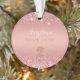 Celebra a la futura novia con este ornamento de ducha de boda Elegant Rose Gold Luxe Shimmer, diseñado para brillar con estilo atemporal. Con un fondo de gradiente suave de oro rosa y delicados destellos de rosa pálido, presenta una elegante escritura personalizada con el nombre de pila de la novia y la frase "Futura Novia".