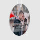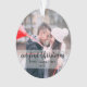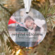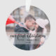 Elegante y moderno adorno de cerámica First Christmas con elegantes letras manuscritas y textura blanca transparente. Personalice el producto con el año, sus nombres y dos de sus fotos favoritas.