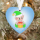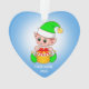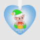 Navidades cortos elf, nombre personalizado en un adorno cardíaco azul claro.