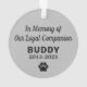 Sencillamente elegante, el adorno conmemorativo de las festividades será hecho como un recuerdo especial de su perro mascota, gato u otro miembro de la familia. El diseño incluye una foto en la parte delantera y el personalizado "En memoria de nuestro compañero leal" que puedes personalizar con su nombre y su vida en la parte delantera y trasera. Los colores y tipos de letra en blanco y en color gris ocre se pueden personalizar completamente.