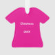Diseño gráfico vectorial de una camisa uniforme de la diseñadora/artista Charmaine Paulson en una camisa con forma de ornamento navideño. El ornamento tiene el nombre del texto (personalizable) en la parte delantera, y Feliz Navidad 20XX en la parte posterior.