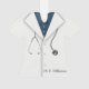 Divertida idea de regalo profesional médico. Cubierta blanca estándar de laboratorio, estetoscopio y su nombre personalizado.